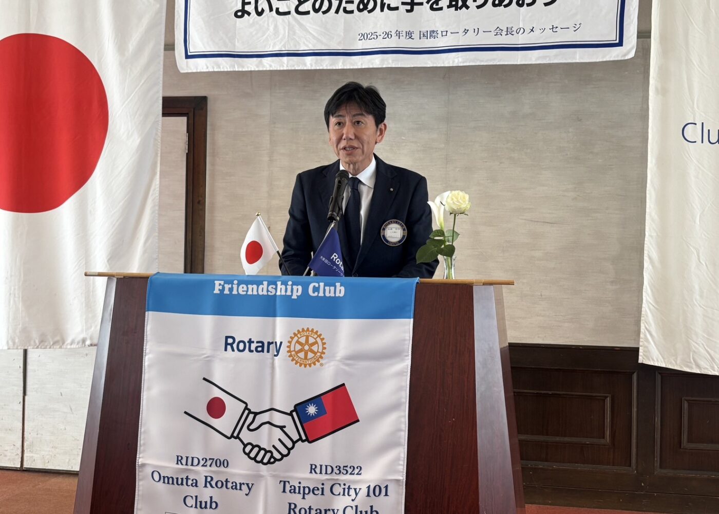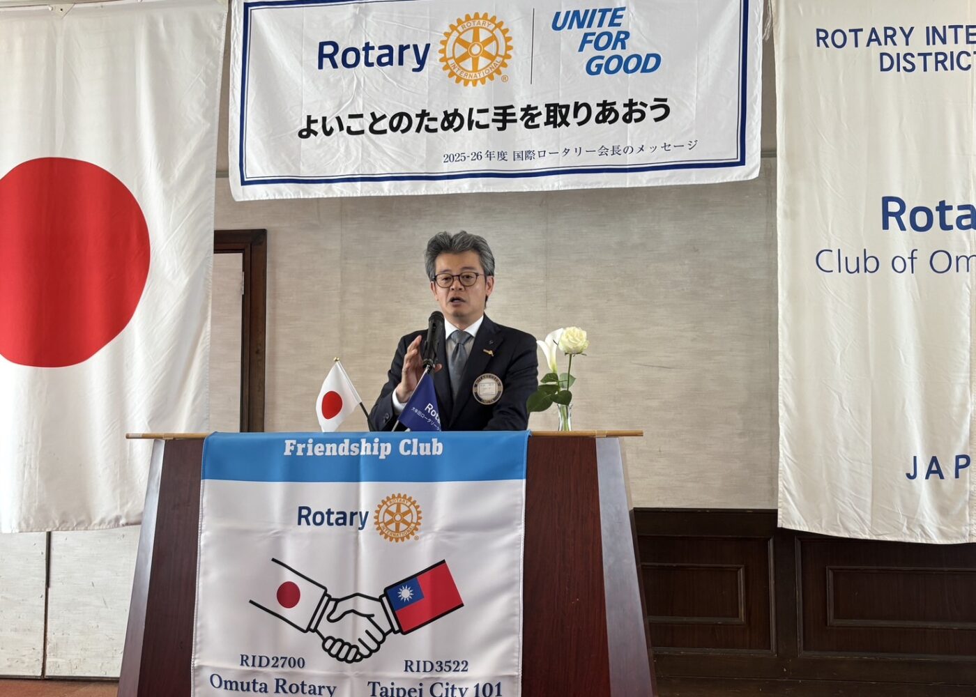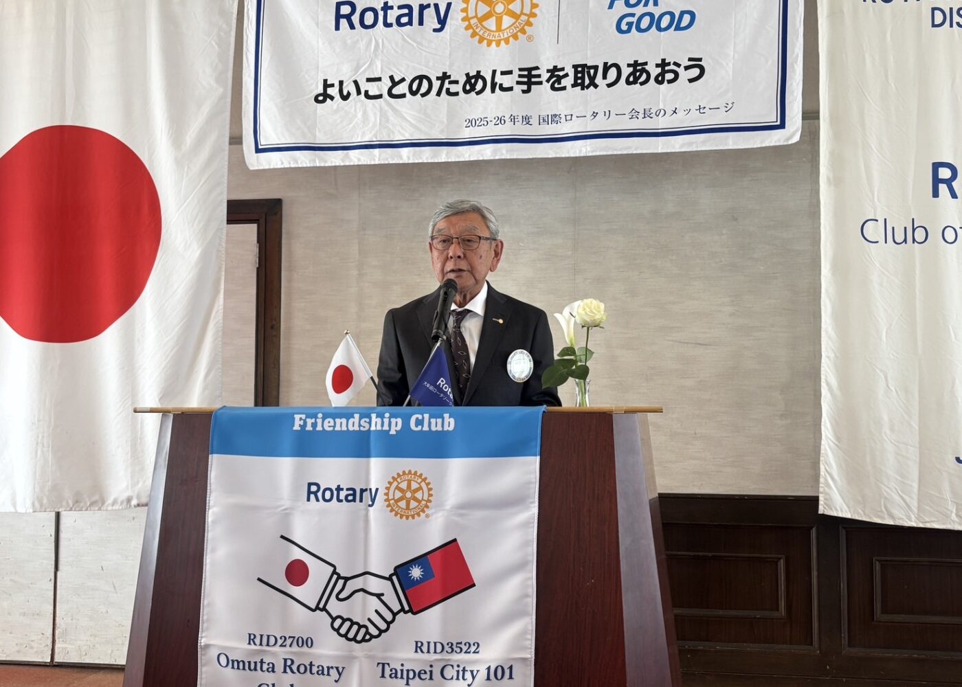 ロータリー奉仕デーに際し、RI第2700地区第7グループのエンドポリオチャリティーゴルフ大会が、2044.11.4福岡サンレイクゴルフクラブで開催されました。大牟田北RCさん主幹によるゴルフコンペに第7グループ各地のRCより総勢50名の方がエントリーされ、絶好のコンディションの中、大牟田RCより、冨永会長をはじめ7名で参戦し、皆さんの活躍により見事、大牟田RCが団体優勝しました。ゴルフ大会の後は、第7グループの会友の皆さんのお子様達が参加され、スナッグゴルフ大会も開催されました。大牟田北RCの皆さま、企画から準備、運営とお疲れさまでした。お陰様で楽しい一日となりました。有難うございました。
